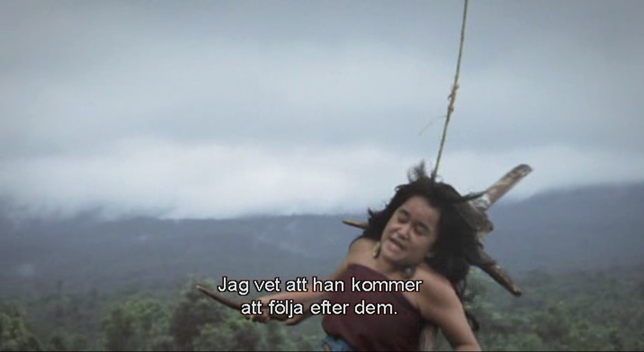to attack. They kill some midgets and capture some other midgets using nets and dragons. But young Goben (played by Sum Korng) had managed to escape and warn the village. Still, there isn’t enough time for village evacuation, so Rockmen killed and captured even more midgets, including Goben’s mother Suta (played by Tom Eurt). But she left a trail by dropping magic medicine stones so Goben and his father Tak Tek (played by Srogn) could find her. Interesting fact is that midgets are still casual chitchatting in air while they are being held by dragon’s claws.