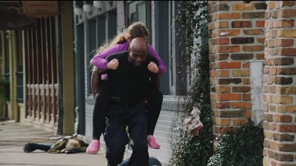 But their day is not over yet. They are now on the street, celebrating victory and inspecting damage and casualties that Red and his retardbot made. But their happiness isn’t to last long, since Red gets arrested for disobeying direct orders. While heat is still on, some random guy approaches Treach and asks him for help in finding his daughter Alexandra. According to her father’s description, Alexandre is 12 years old and almost 2 meters tall. Some advanced kids they got there. Treach scouts building in flames with his gun unholstered and ready to shoot. No wonder poor Alexandra didn’t want to go with him since she was probably afraid of getting shot by dumb soldier. Though, even if he fired, it would be because of fear due to fact that Alexandra is not just only tall for her age, but extremely fat as well. She looks like Frankenstein’s daughter. Anyway, Treach somehow manages to convince her to go with him and carries her out on his back. We could actually hear his spine snapping in background!!!
