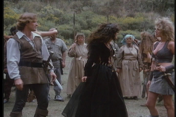 In order to fight against evil king, Athelia will need to get more people on her side. Once again she ambushes Hofrax with a plan to free captured peasants who stood up against tyranny. Great battle commences with a lot of unconvincing, awfully choreographed fight scenes. This time Hofrax ends captured and tied to the tree. Athelia also captured her old friend from court Aurion (played by Greg Wangler) but she gives him much more hospitality than Hofrax. Unexpected sex scene between two of them is the best proof for level of hospitality. Yeah, all men are pigs but when itch between a legs begins, even an evil slave-driver will suffice. That’s what I call a hypocrisy. And just to make sure her hypocrisy stays unrevealed Athelia sends back to Ankaris both Hofrax and Aurion tied to horses and without pants.