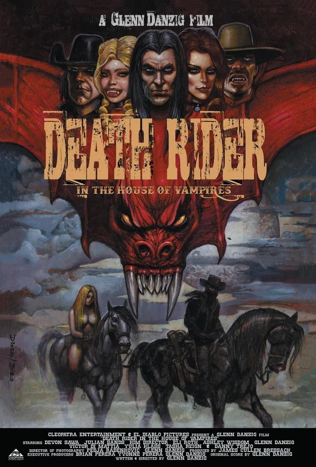 Glenn Danzig‘s Death Rider in the House of Vampires had it’s official premiere in Westwood at the historic Regency Bruin Theater. Director and the cast were present for the Q & A after the screening and we also got these cool interviews with the star of the movie Julian Sands (Warlock)…