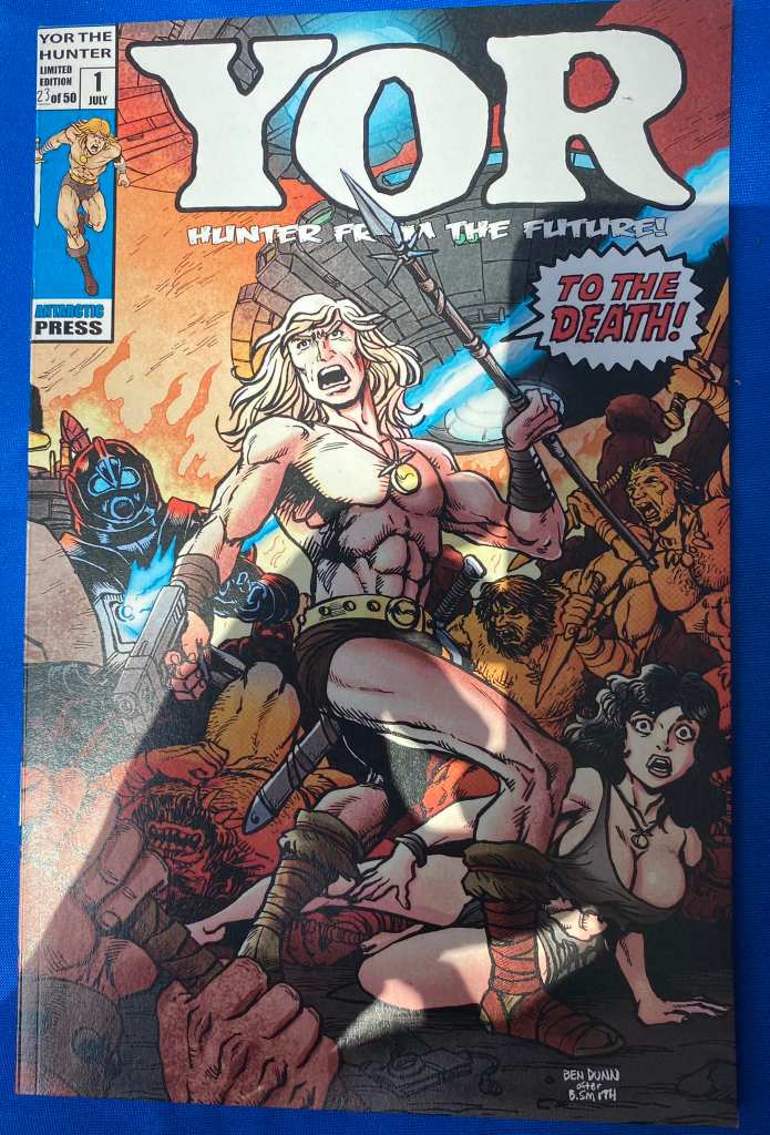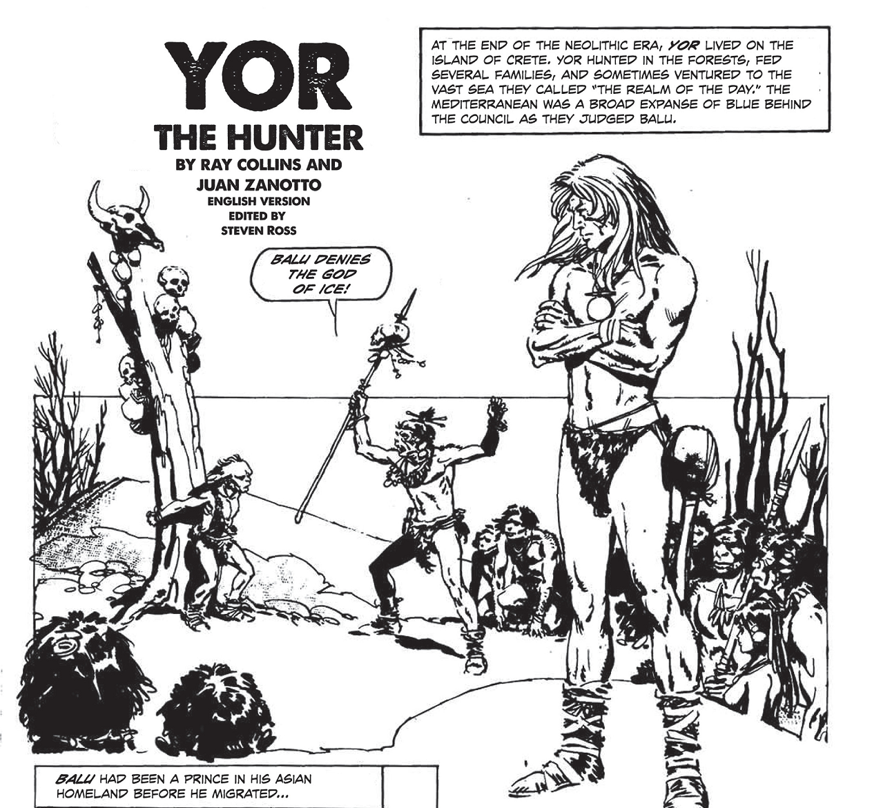 Now back to the still not widely known fact that Yor was originally an Argentinian Comicbook called Henga el cazador aka Yor the Hunter. Created in ’74 by Ray Collins (aka Eugenio Juan Zapietro) and artist Juan Zanotto ( Falka, Downtime). Until now it was only published in Spanish and Italian, so I was pretty surprised when I found out that Antartic Press (Warrior Nun, Ninja Highschool) is publishing the first English edition as a 4 issue limited series.