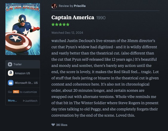 Surprisingly over the weekend there were some rumbling of a surprise screening on Twitch that turned out to be the Original Cut of Pyun’s Captain America! And the reactions are overwhelmingly positive!