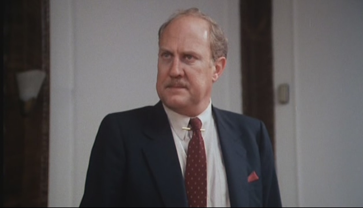 After being scanned with futuristic metal detector you can see on the picture above, Bain meets with Dr Savary (played by Denholm Elliot) and confronts him about drug. Doctor didn’t let himself crack under the sarcasm and irritation Bain evokes at all times and he denied any knowledge of such substance. But Bain took an opportunity while Savary was briefly outside the office to take a look around. He finds a key and strangely shaped figurines. This is the point when viewers should start connecting some of a strings in the plot but I doubt that any of us could do such thing, given so little info about everything. Anyway, Savary is back and kicks out detective as politely as he could. Meanwhile, freaks somewhere conduct experiments on Nicole. They are giving her the same