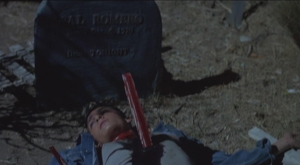 After the funeral Linda continues using the board. That’s a huge mistake, because a person is more susceptible to being manipulated by spirits when using the board alone. They’ll act nice and helpful, get the person addicted to communicating with them. Then they’ll start terrorizing the person, breaking down their resistance. Finally, they’ll possess them. This is called progressive entrapment, and Linda has fallen into it. Jim chalks her change in demeanor up her pregnancy, but Brandon knows there is something else going on. So he brings some punkass girl Zarabeth (played by Kathleen Wilhoite). She is psychic medium (no surprise there). Zarabeth channels David, who claims to be a ten-year-old boy. She and Brendan begin to suspect that David wasn’t honest about who he was. A suspicious Zarabeth returns home to research the occurrence but something is waiting for her there. Her throat is slashed before she is thrown through a window and lands on a sundial, impaling her to death. What an overkill! I bet she didn’t see that coming!