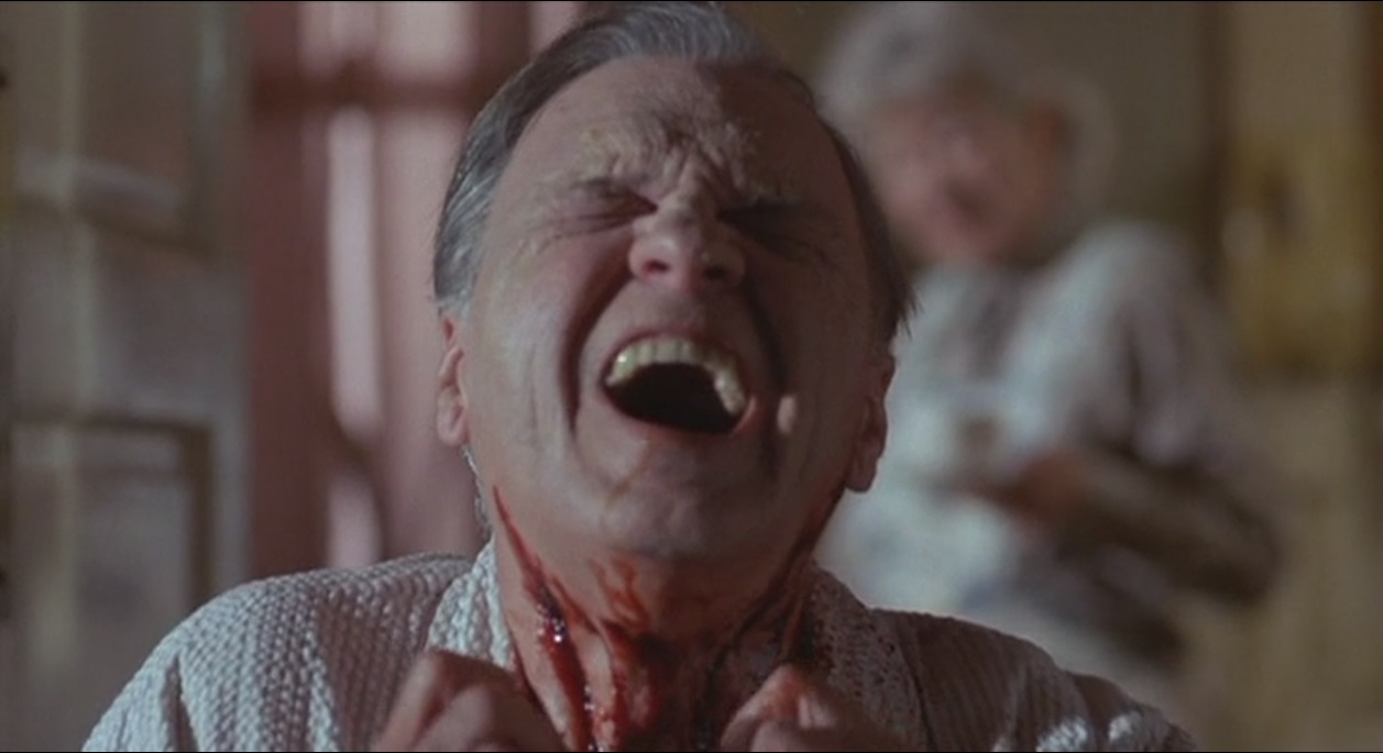 The next morning, Jim witnesses Linda violently thrown against the wall, rendering her unconscious. After she is brought to a hospital, doctors confirm Linda is not pregnant as they had suspected. Phantom pregnancy? Or was it unholy spirit in this case? She has a dream in which some old man cuts of her head with an axe. Don’t worry though, it’s plastic. The head, not an axe.